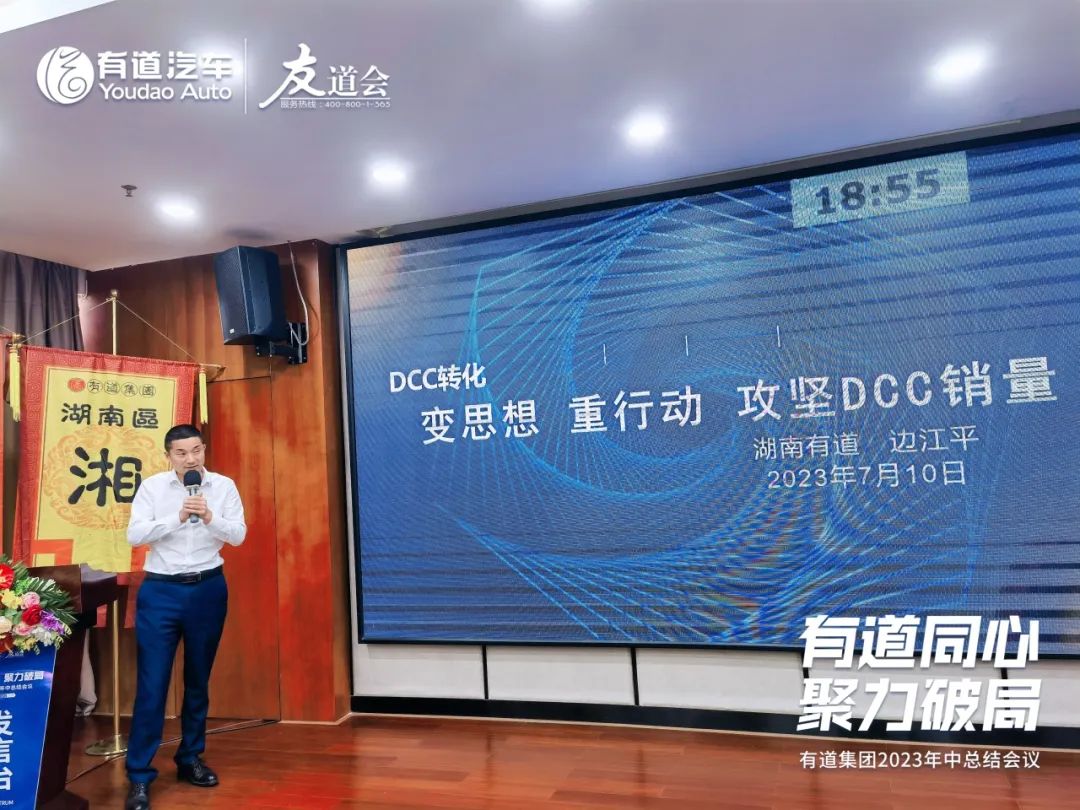 會議最后,有道汽車集團董事長林大昌上臺作了總結性致辭,并對2023年下半年重點工作做出安排部署,為下半年工作奮進指明了清晰方向,給了集團全體沖刺目標堅定了信心。