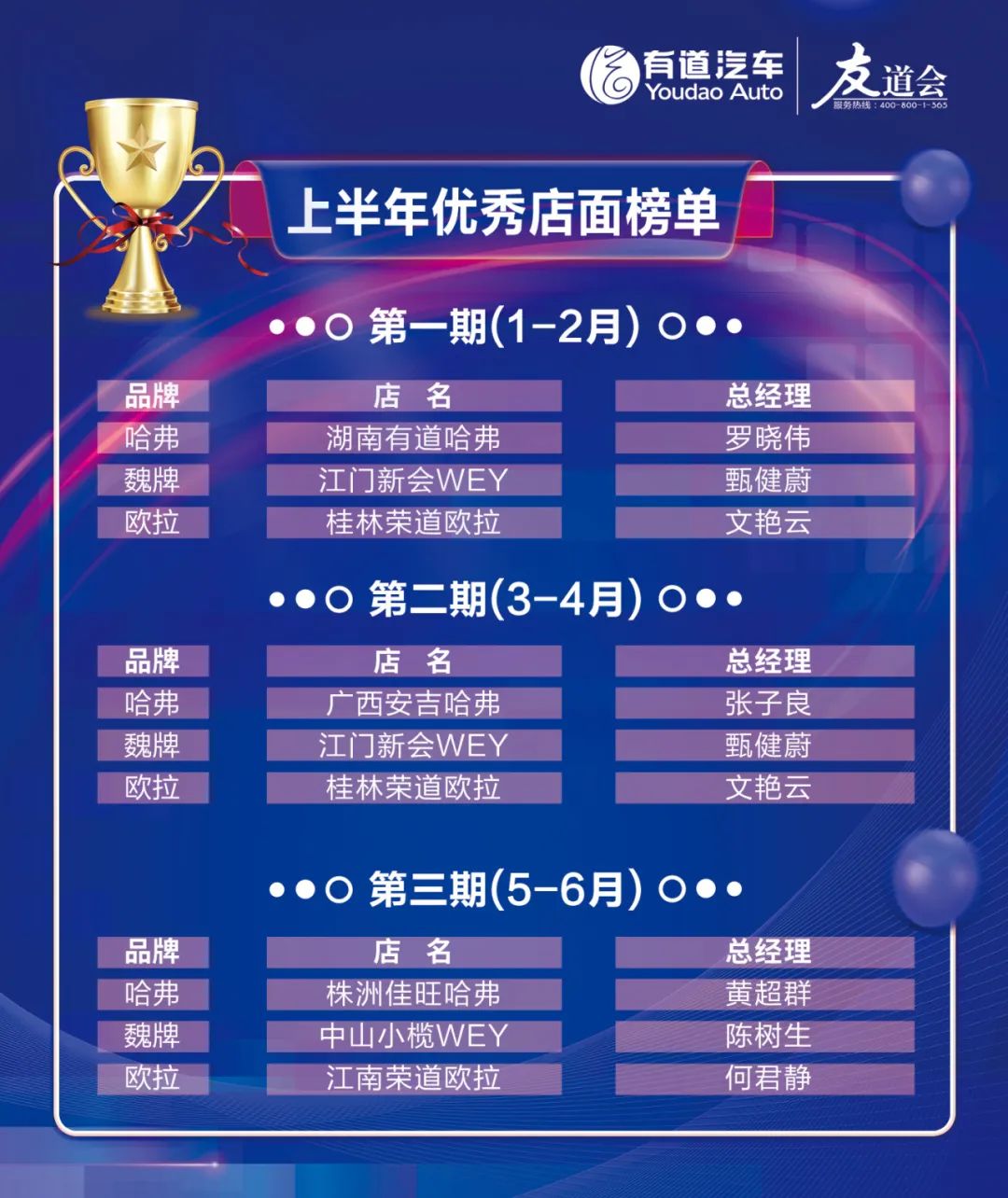 一分耕耘一分收獲,晚宴到了頒獎環(huán)節(jié),為有道集團2023年上半年運營工作突出門店給予表彰,獲獎店面名單如下: