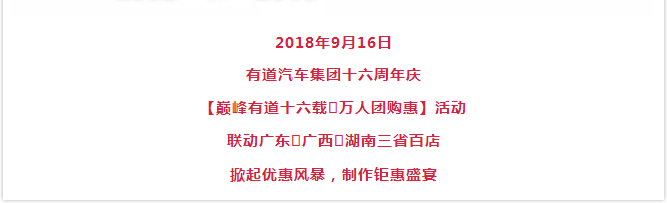 【巔峰有道十六載·萬人團(tuán)購惠】有道汽車集團(tuán)十六周年慶鉅惠來襲!