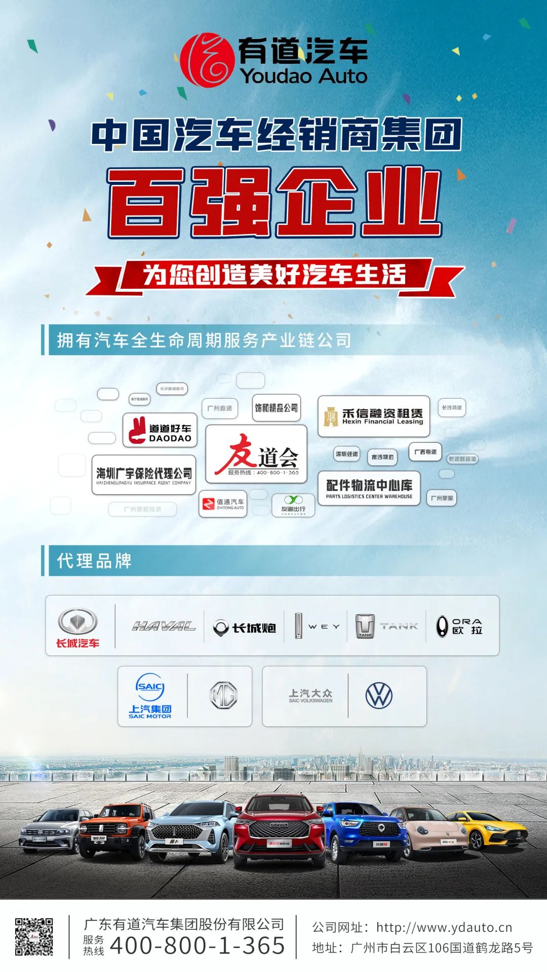 2002年9月成立的有道汽車集團(tuán),經(jīng)過了20多年的不斷前行創(chuàng)新,2010年-2022年連續(xù)十二年入選中國汽車流通協(xié)會“百強(qiáng)經(jīng)銷商集團(tuán)”,目前覆蓋廣東、廣西、湖南3省14市,擁有標(biāo)準(zhǔn)4S店達(dá)40多家,經(jīng)銷服務(wù)網(wǎng)點(diǎn)100余家。擁有各類專業(yè)汽車服務(wù)人員達(dá)2000余人,年?duì)I業(yè)收入50多億元。