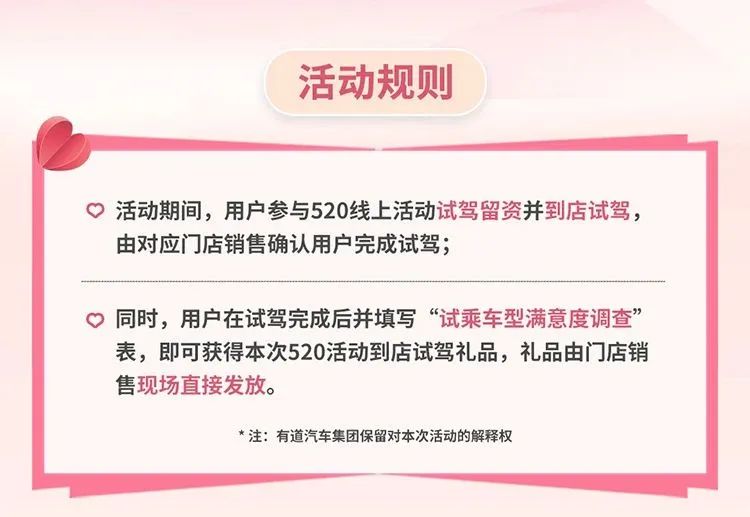 即可獲得有道品牌店精心準(zhǔn)備的520活動(dòng)到店試駕禮品。