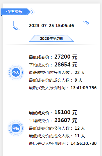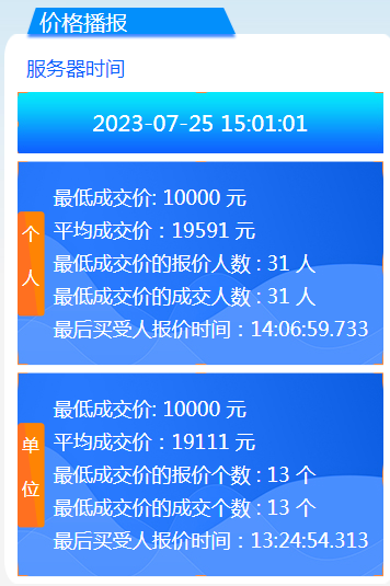 單位最低成交價(jià)為10000元,最低成交價(jià)成交個(gè)數(shù)為13個(gè),單位平均價(jià)格為19111元/人!