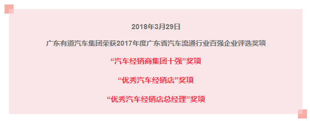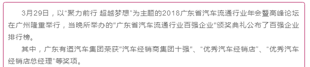 【喜訊】有道集團榮獲“廣東省汽車集團經(jīng)銷商十強”獎