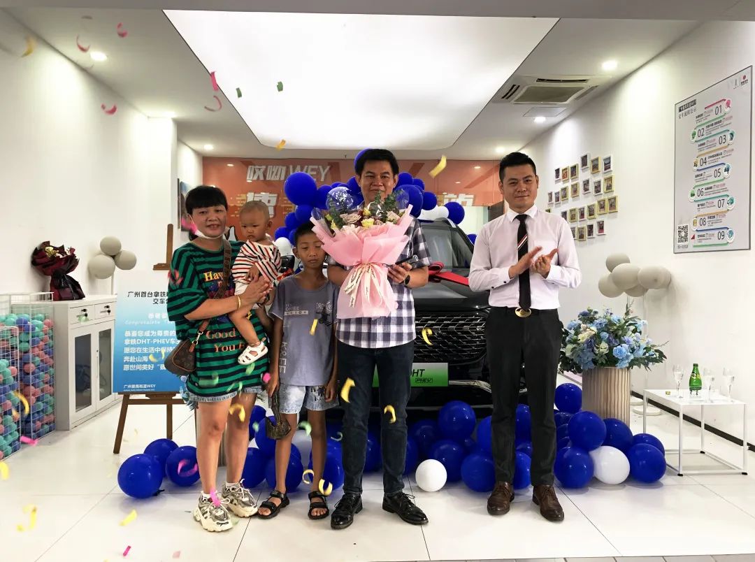 最后,工作人員與車主一家人合影留念,有道祝福車主暢享出行生活,WEY來(lái)可期!